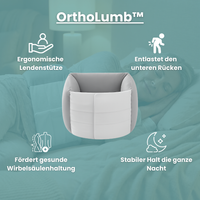 OrthoLumb™ bietet eine einfache Möglichkeit, deine Wirbelsäule im Schlaf zu unterstützen – Nacht für Nacht.